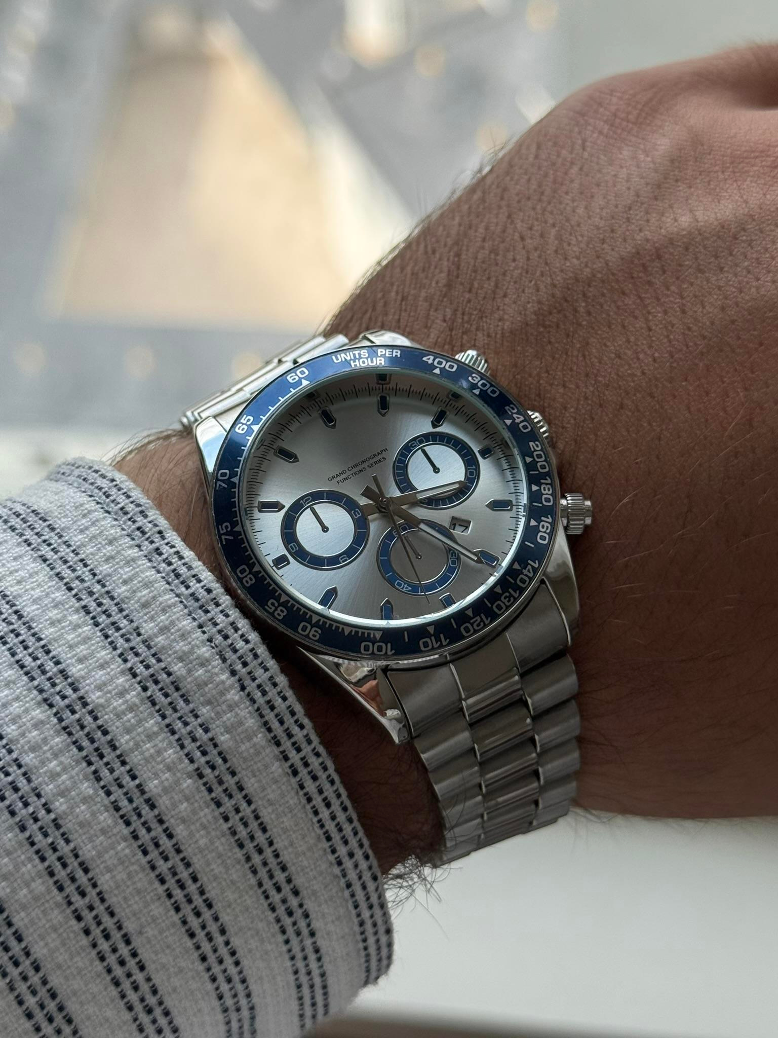 Alba Bezel Tasarım Yeni Sezon Erkek Kol Saati Gümüş Kordon (Beyaz Kadran Lacivert Bezel)