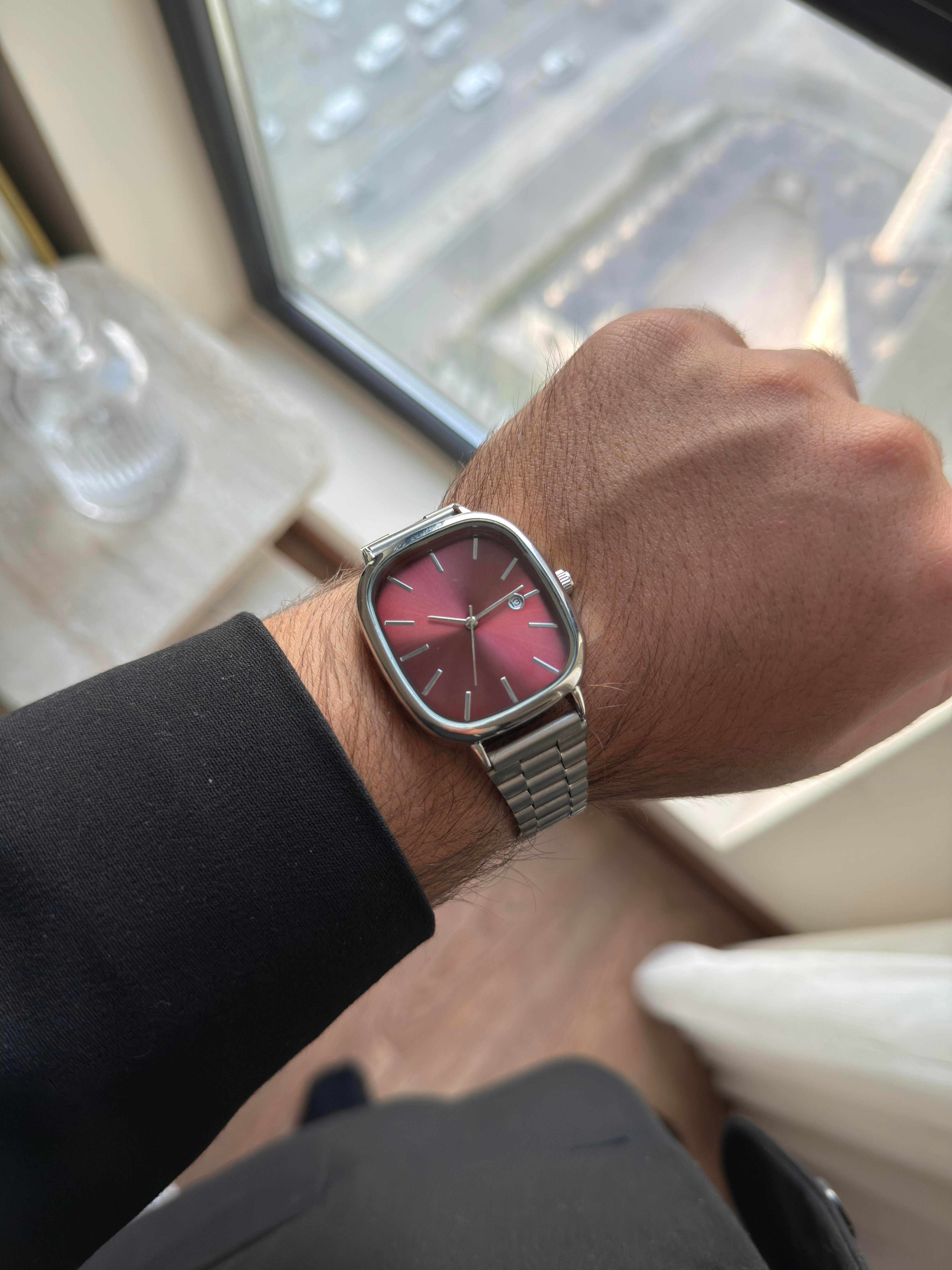 Casian Trend Model Takvimli Erkek Kol Saati Gümüş Renk (Bordo Kadran)