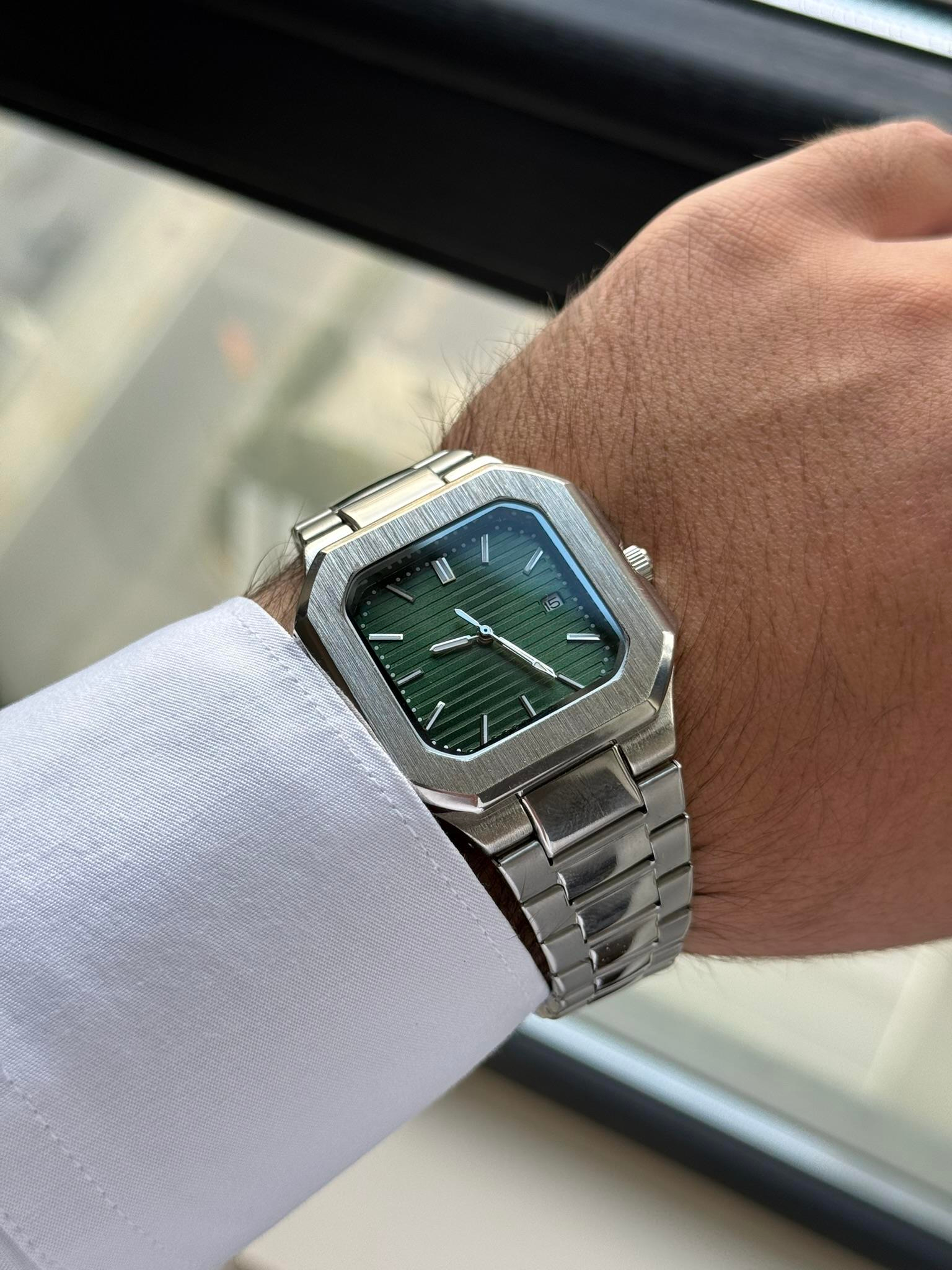 Rocia Kare Kasa Erkek Kol Saati Gümüş (Yeşil Kadran)